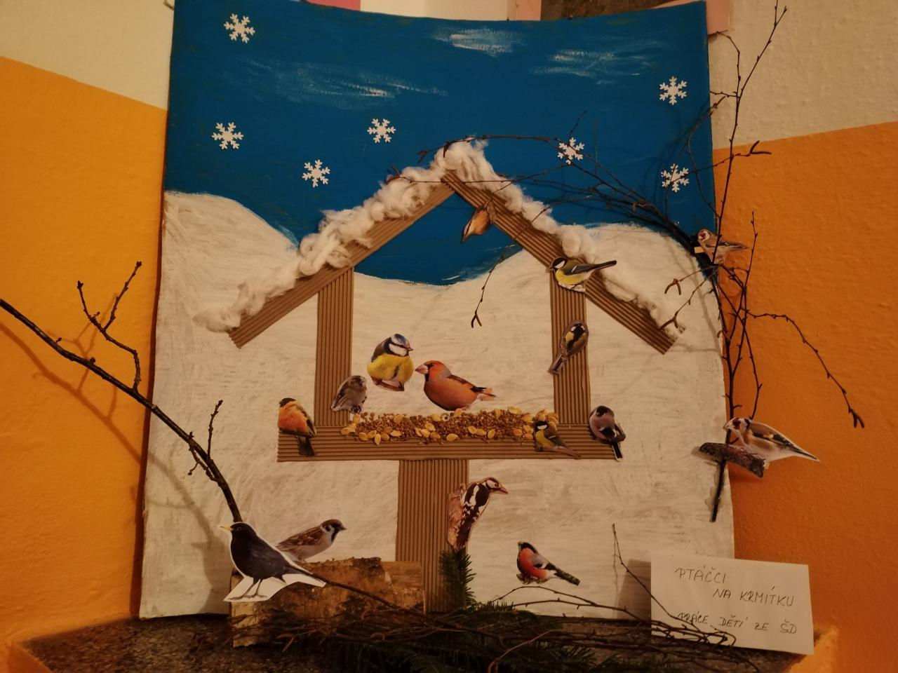 Když je venku zima, přikrmujeme ptáčky na krmítku. V družině jsme si o tom vypravovali a poté si děti takové krásné krmítko i s ptáčky vyrobily jako dekoraci do školní chodby.
