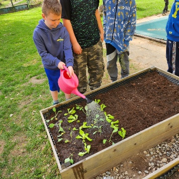 My jsme malí zahradníčci: zaseli jsme ředkvičky, zasadili cibulky, saláty a kedlubny. Ve třídě za oknem pěstujeme rajčátka. Moc se těšíme na úrodu.