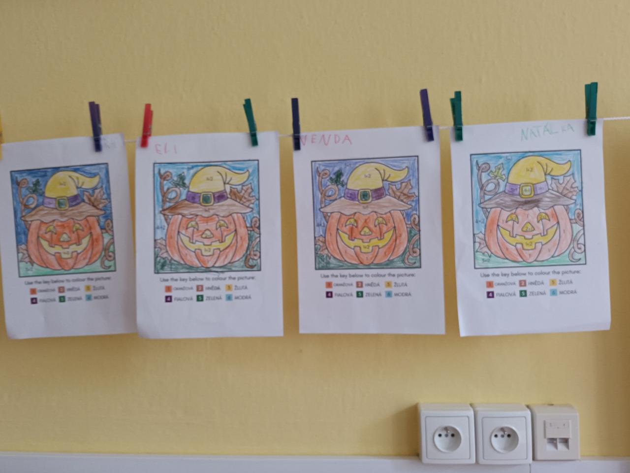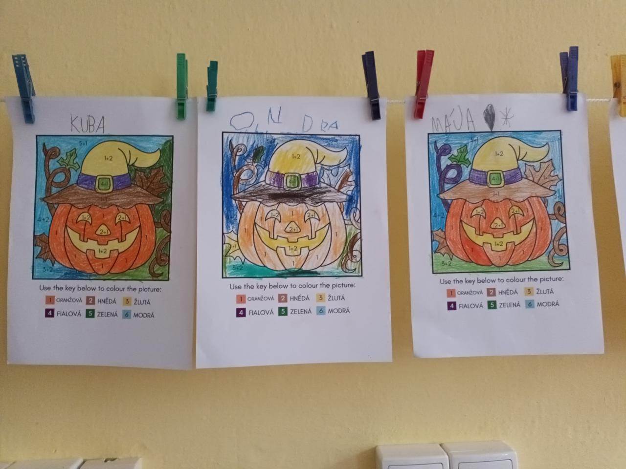 Trošku jsme si připomněli Halloween, Dušičky. Uzavřeli jsme téma měsíce - Podzim přichází. Prvňáčci začali sčítat a druháčci napsali svůj první strašidelný příběh.