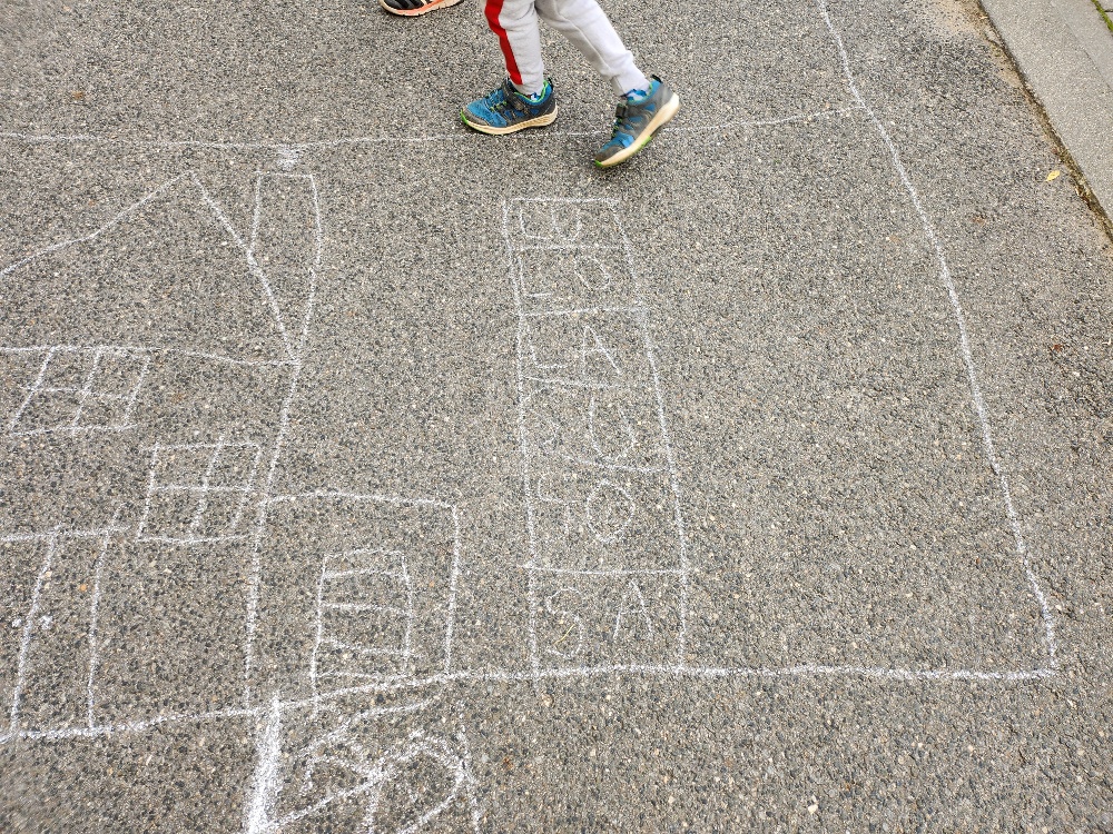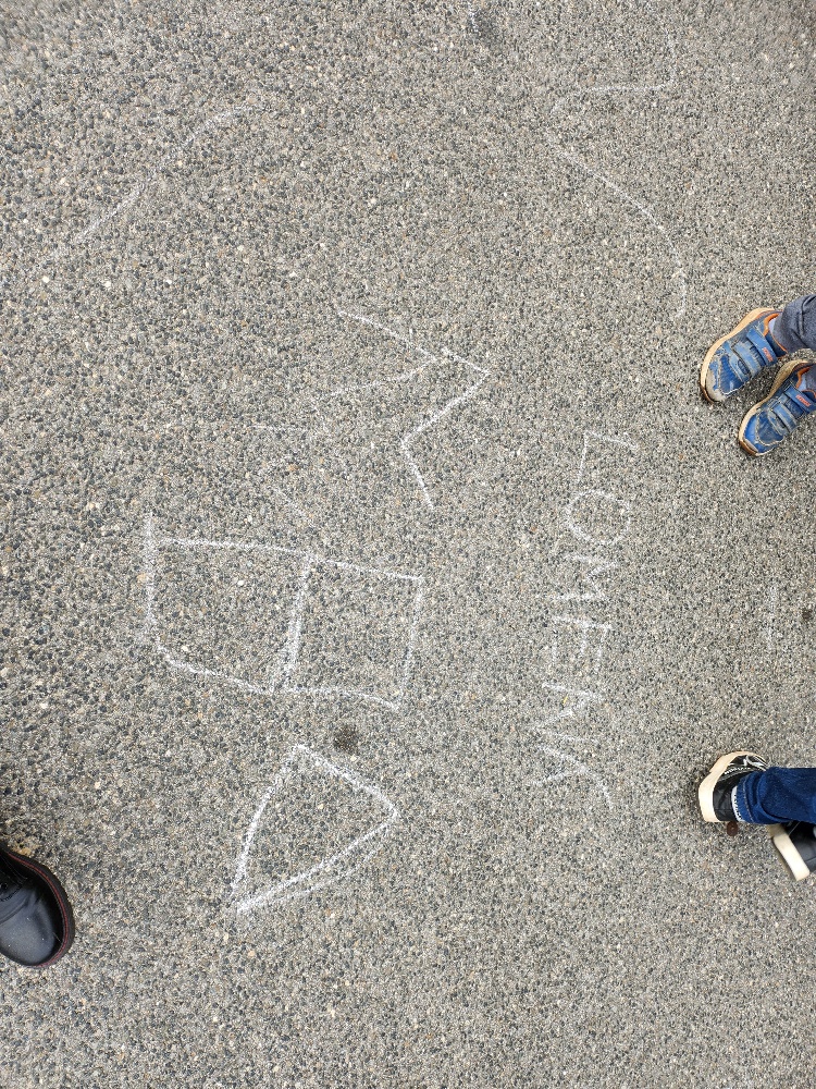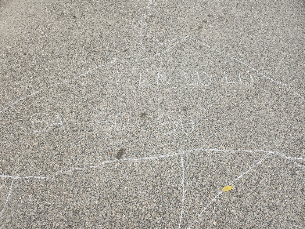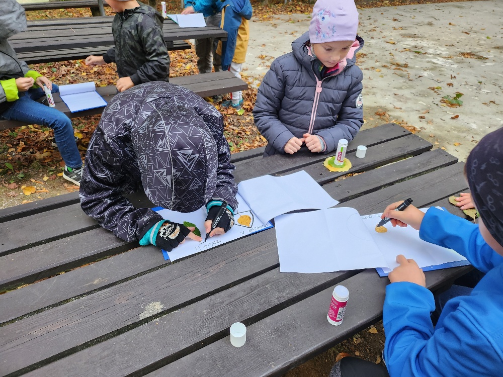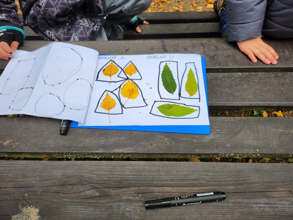 Prvňácči a druháčci dnes procvičovali geometrické tvary a ve dvojicích hledali listy připomínající dané tvary. Poté prvňáčci kreslili křídou slabiky SA, SO, SU, LA, LO, LU a při skákání panáka je četli. Druháčci stejným způsobem opakovali druhy čar.