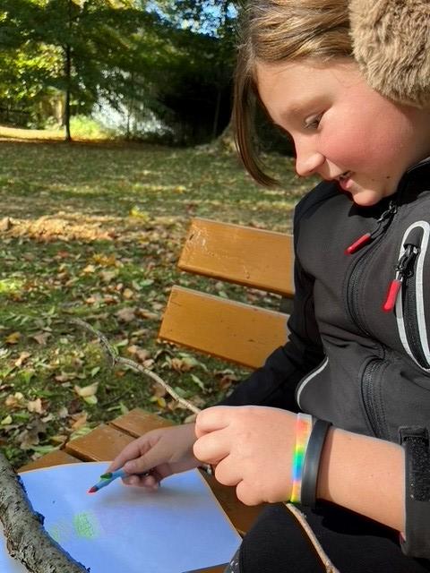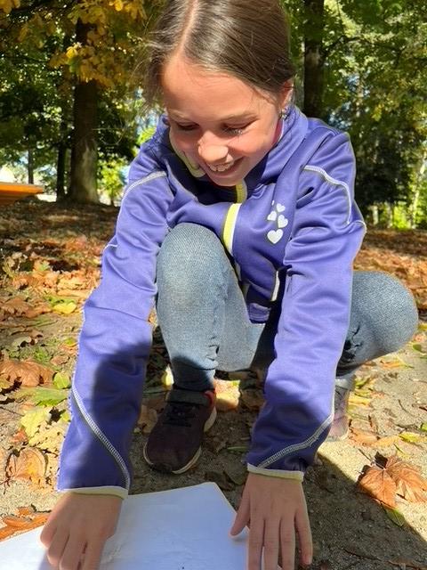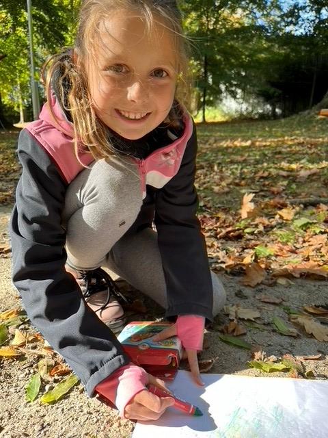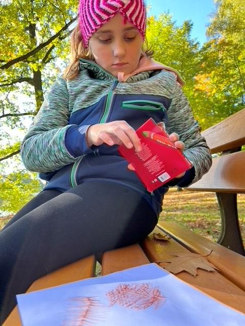 Krásné podzimní počasí nám umožnilo strávit hodinu výtvarné výchovy v parku, kde si děti vyzkoušely techniku frotážování. S nadšením hledaly přírodniny, z kterých pomocí voskovek vytvořily originální díla.