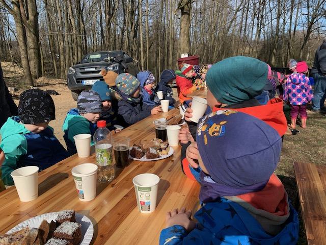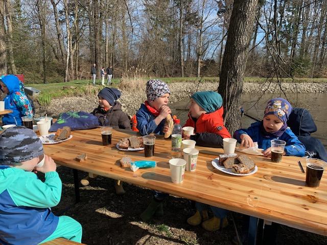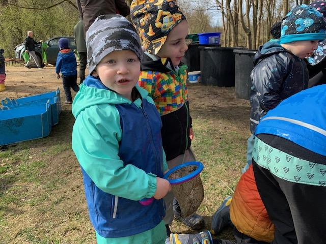 Spokojené děti z MŠ při výlovu Závitovského rybníka u rodiny Chytkovy